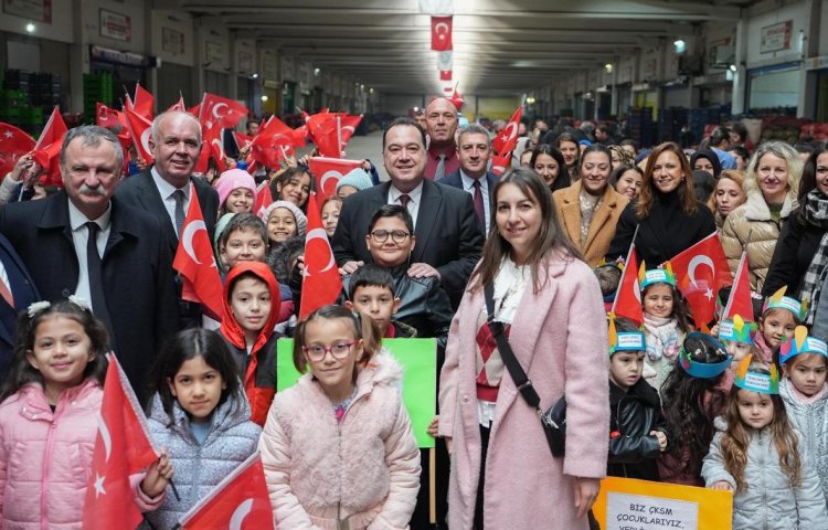 Manisa Büyükşehir Belediyesi, 12-18 Aralık tarihlerinde kutlanan Tutum, Yatırım ve Türk Malları Haftası kapsamında çocuklara yerli ürünlerin önemini aşılamak amacıyla Sebze ve Meyve Hali’nde özel bir etkinlik düzenledi. Başkan Besim Dutlulu, çocuklara seslenerek market, bakkal ve manav alışverişlerinde Türkiye’de üretilen malları tercih etmeleri çağrısında bulundu.